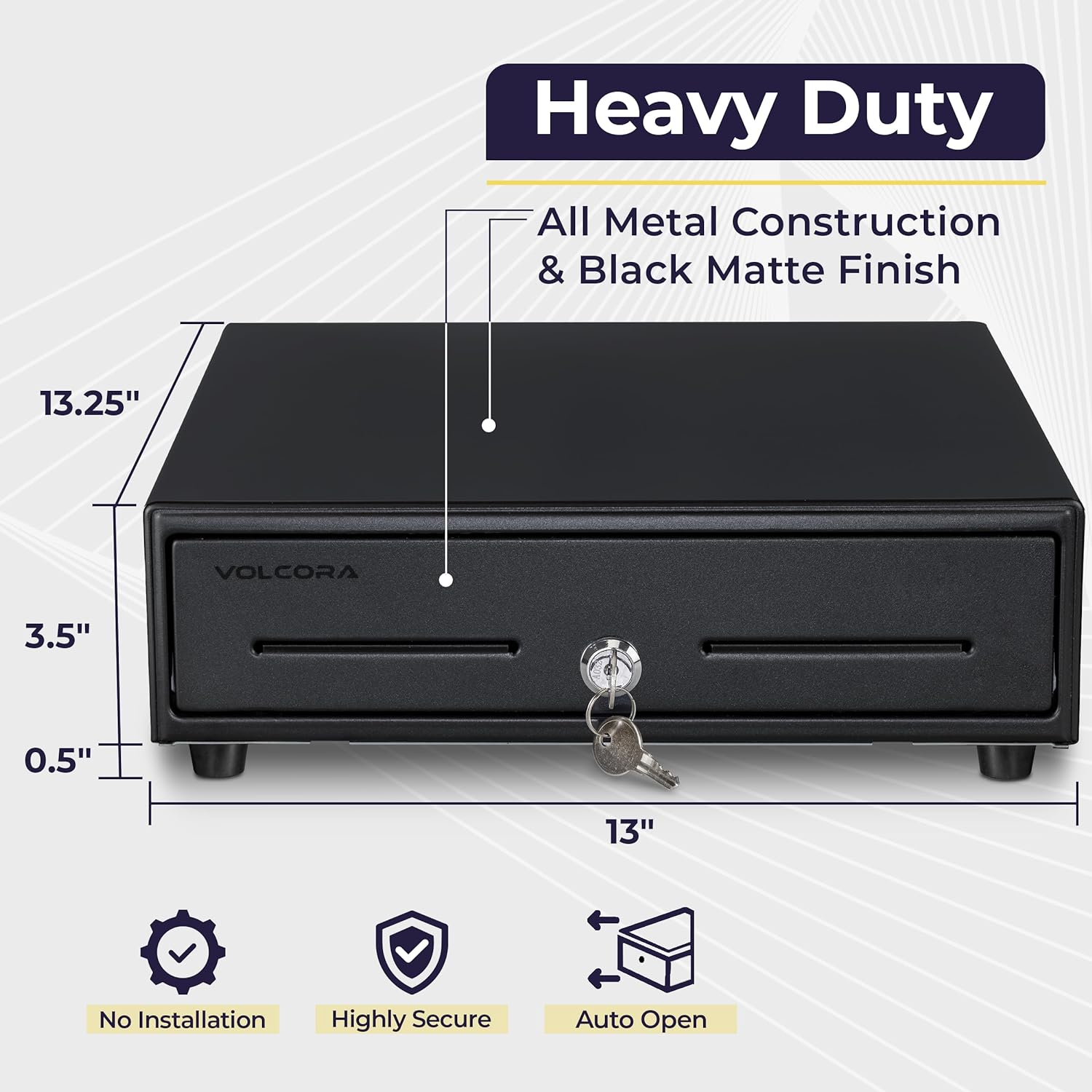 Volcora 13″ POS Cash Drawer – Black (4 Bill / 5 Coin)